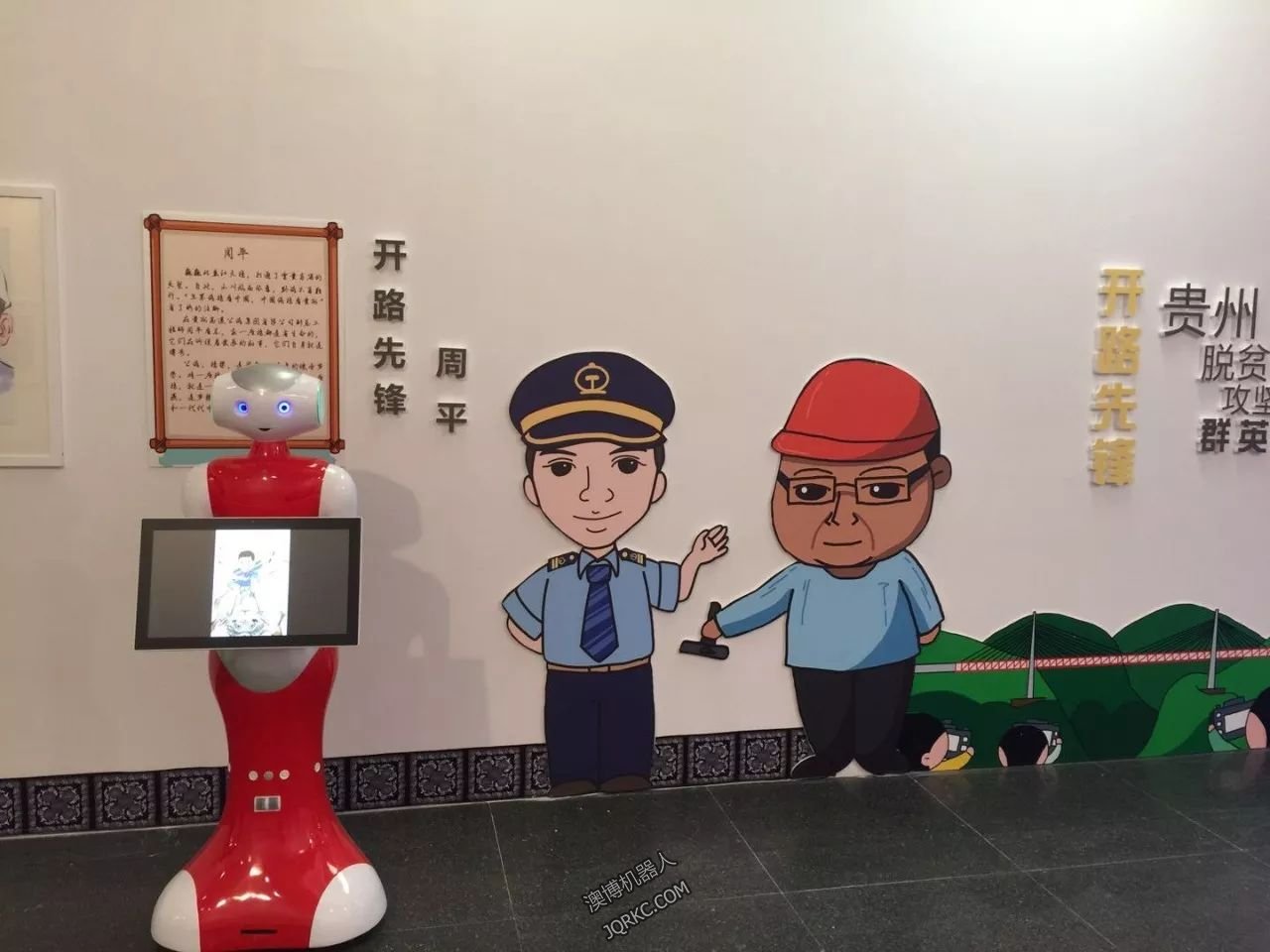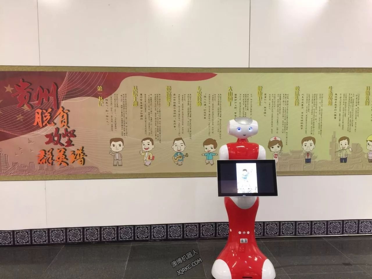 由貴州省委宣傳部主辦的貴州脫貧攻堅(jiān)群英譜漫畫展在11日正式開展,本次畫展是由全國漫畫愛好者以及貴州青少年創(chuàng)作的貴州脫貧攻堅(jiān)群英譜漫畫作品。澳博機(jī)器人佩佩被特聘為機(jī)器人講解員