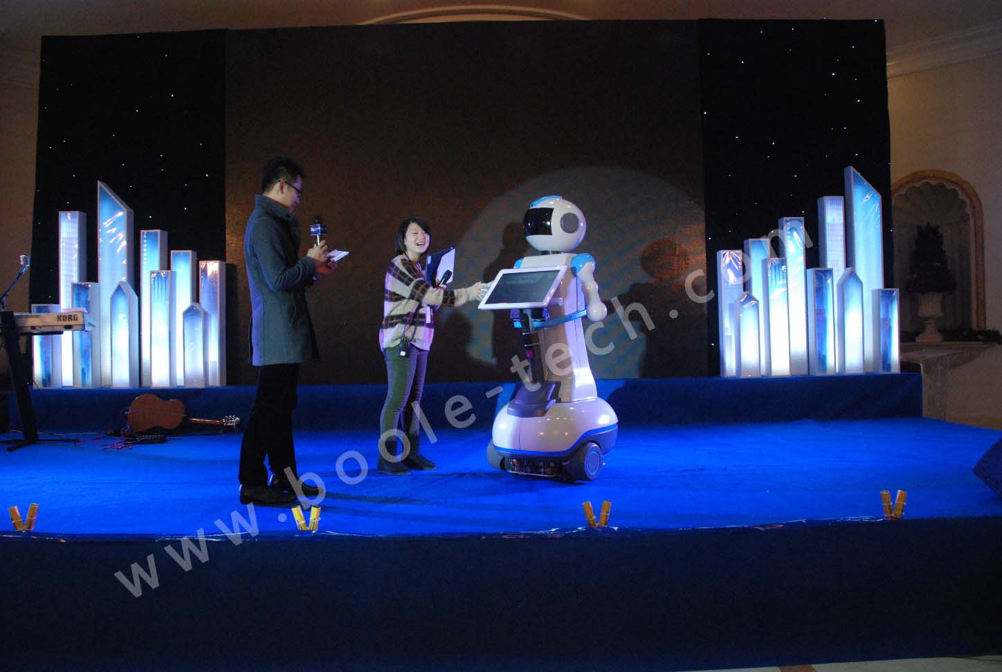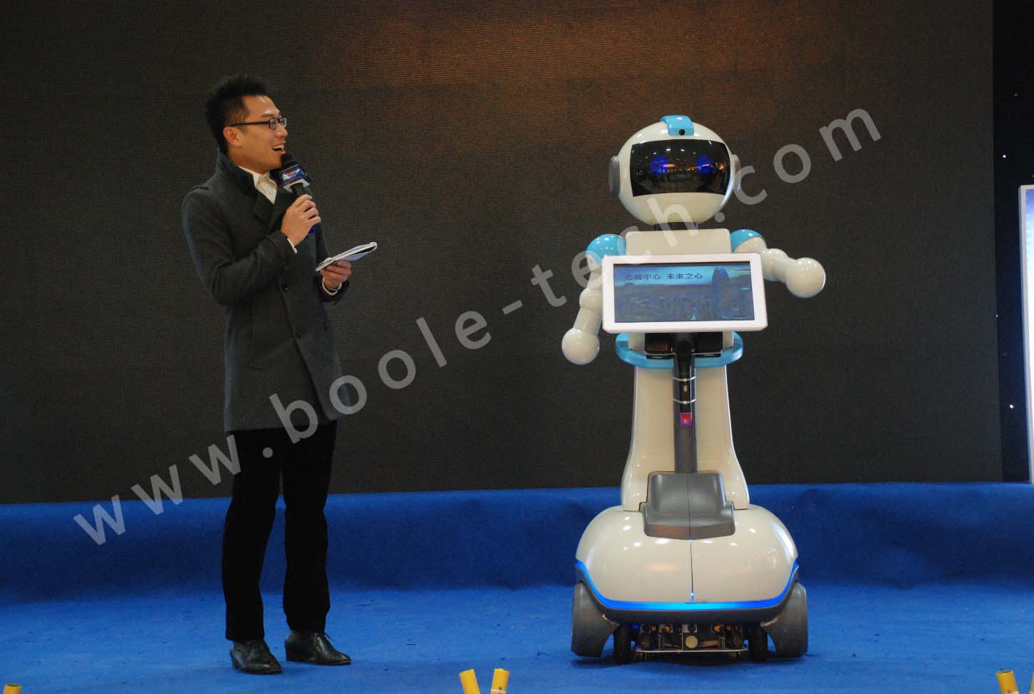 主要功能:語音播報、語音講解、語音交互。可結合實際需要輸入需要播報、講解、交互的各種專業信息,眼睛和嘴部由LED燈組成,說話時LED等會亮亮起,配合語音內容做出各種表情,可愛活潑,惹人喜愛,胸前液晶顯示屏會提供播報講解的文字內容。 | |||