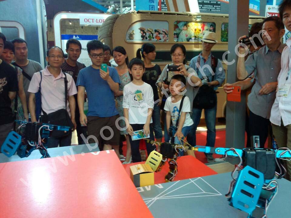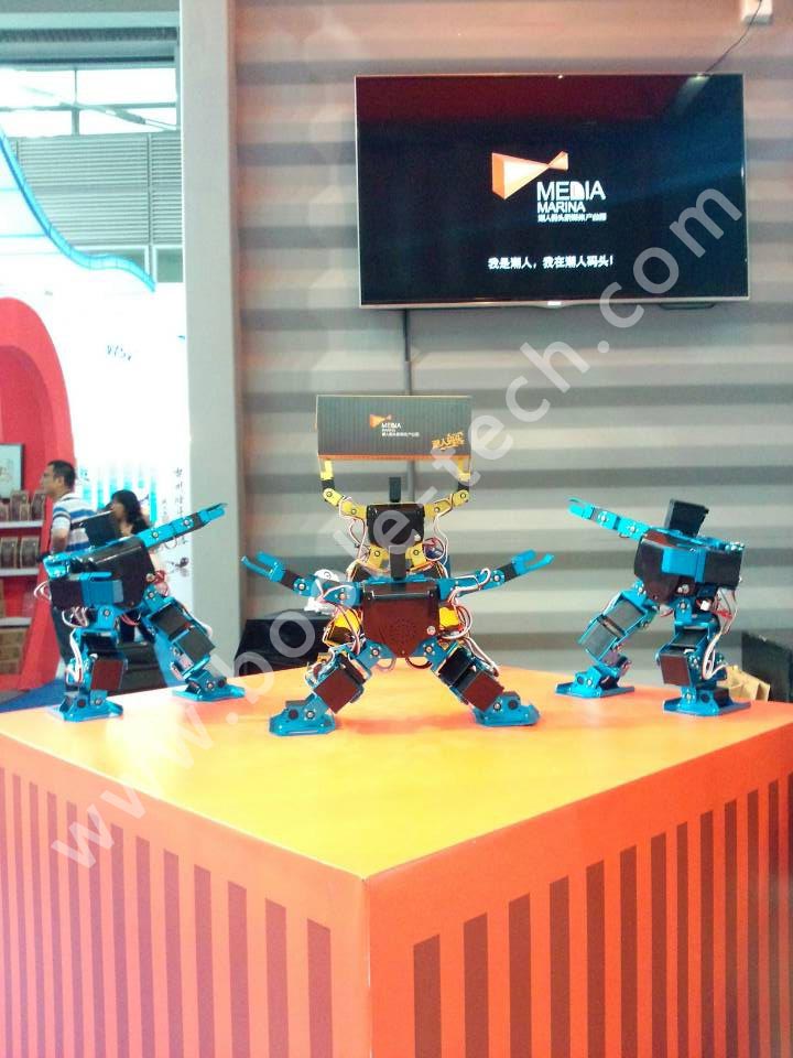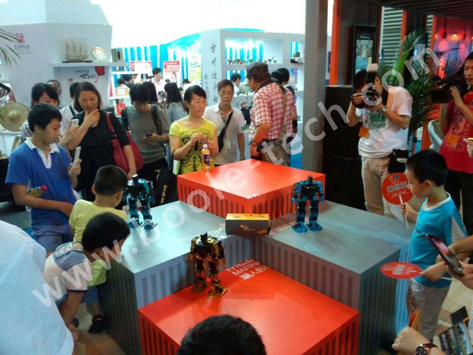 應參展商邀請,我們共推出多款智能機器人,助陣“潮人碼頭”參展商,多臺舞蹈機器人一起跳舞,吸引了現場很多游客圍觀,同時也有不少電視臺記者采訪,“機器人表演”成為了展會中一個亮點。