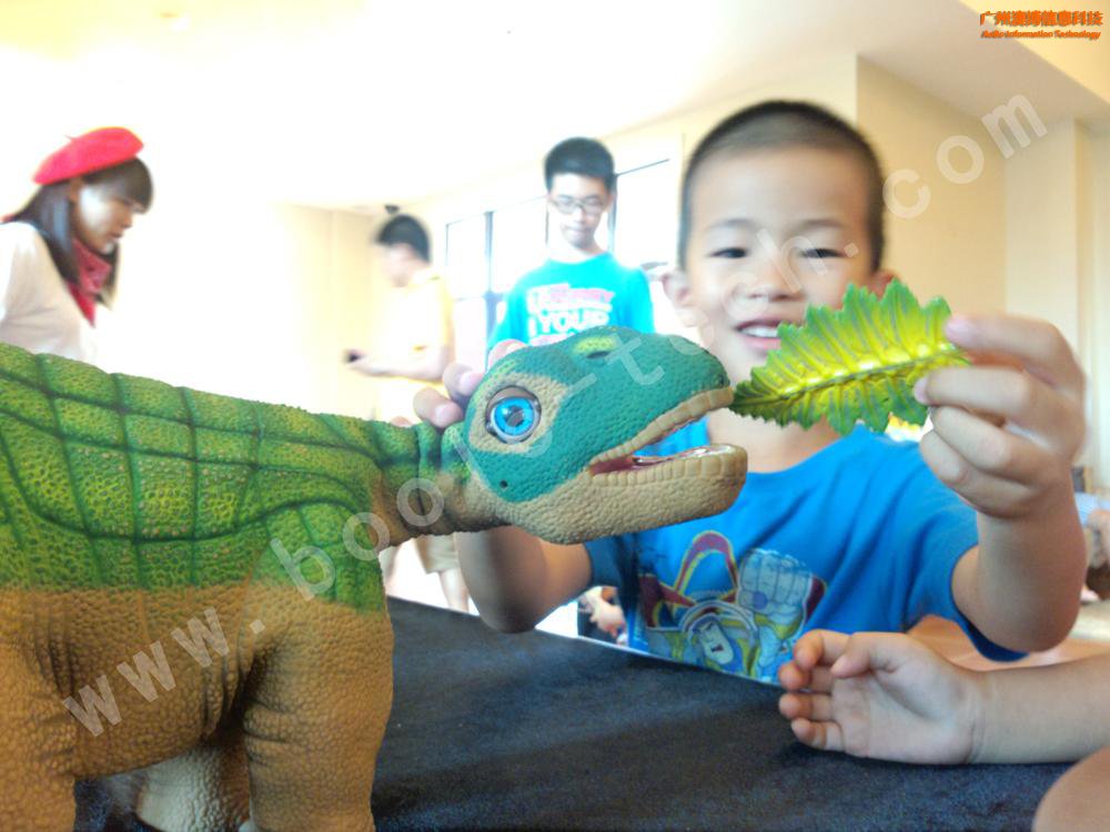 高仿真機器恐龍,全身多個傳感器。像個孩子一樣,只要多撫摸它,它就會搖搖尾巴,還試著學走路,餓了還會叫著向你要吃呢!