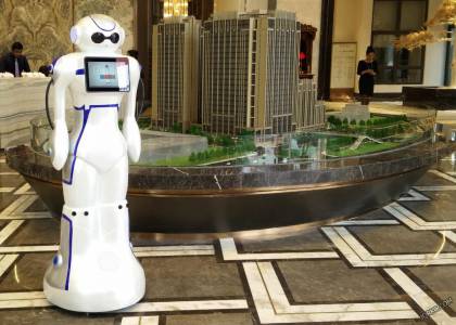 售樓處機器人價格多少錢一臺,房地產行業需要什么服務機器人,機器人怎么應用在營銷中心 我們一進門就看到這個小可愛,它可以跟我們互動,迎賓接待,一上來就跟我們打招呼,進...