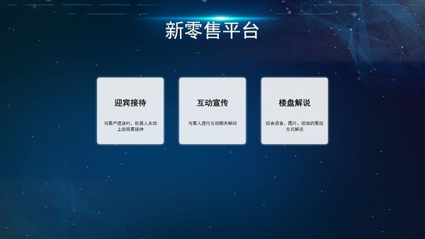 售樓中心+機器人解決方案 行業應用簡述: 隨著人工智能技術的開展和商用機器人的成熟,售樓機器人在房地產行業的應用將十分普遍,目前許多房地產商對售樓機器人的功用需求大多...