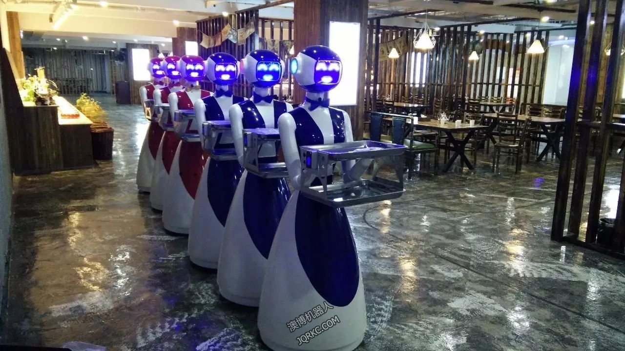 圖為一家采用澳博餐廳機(jī)器人的餐廳,6臺(tái)澳博餐廳機(jī)器人可以同時(shí)送餐服務(wù),減少人力投入降低成本,還能與客人互動(dòng),增加餐廳整體氛圍,吸引更多人氣。